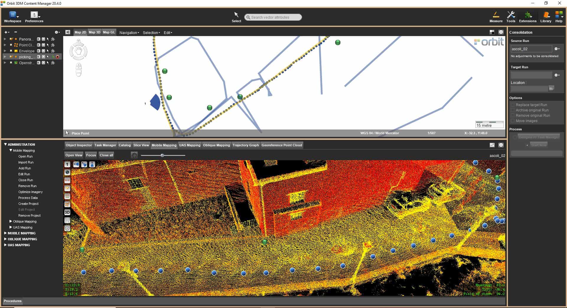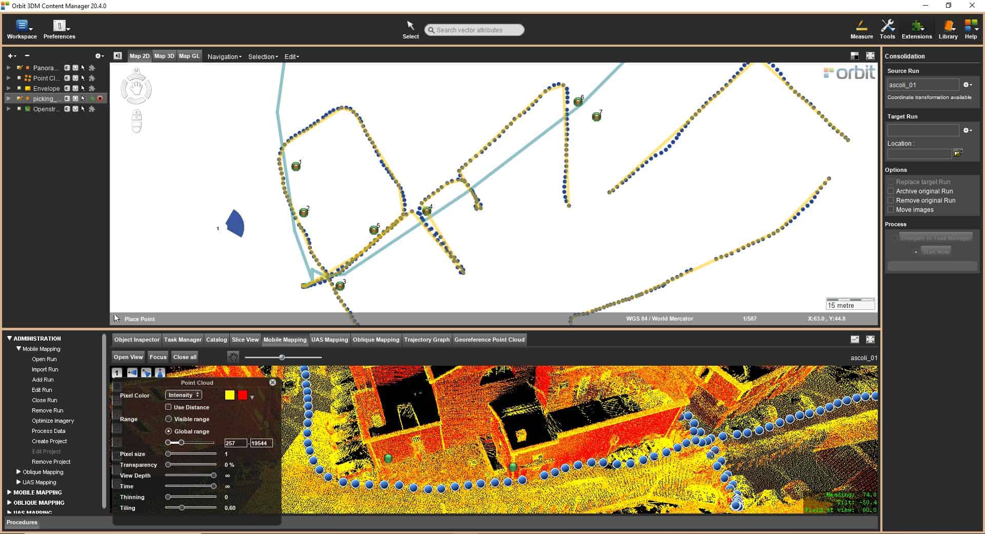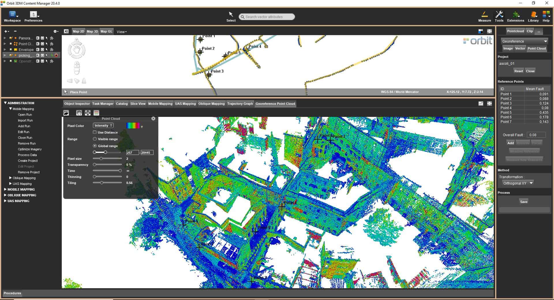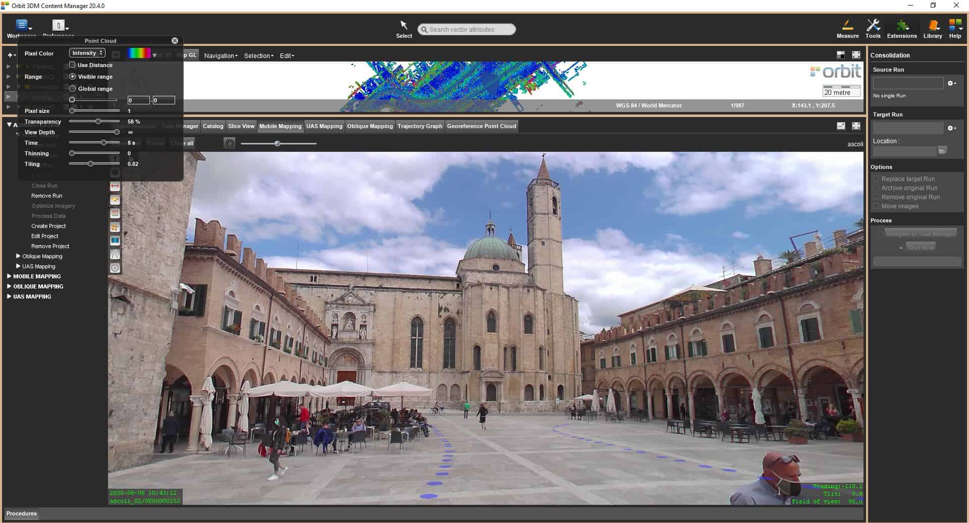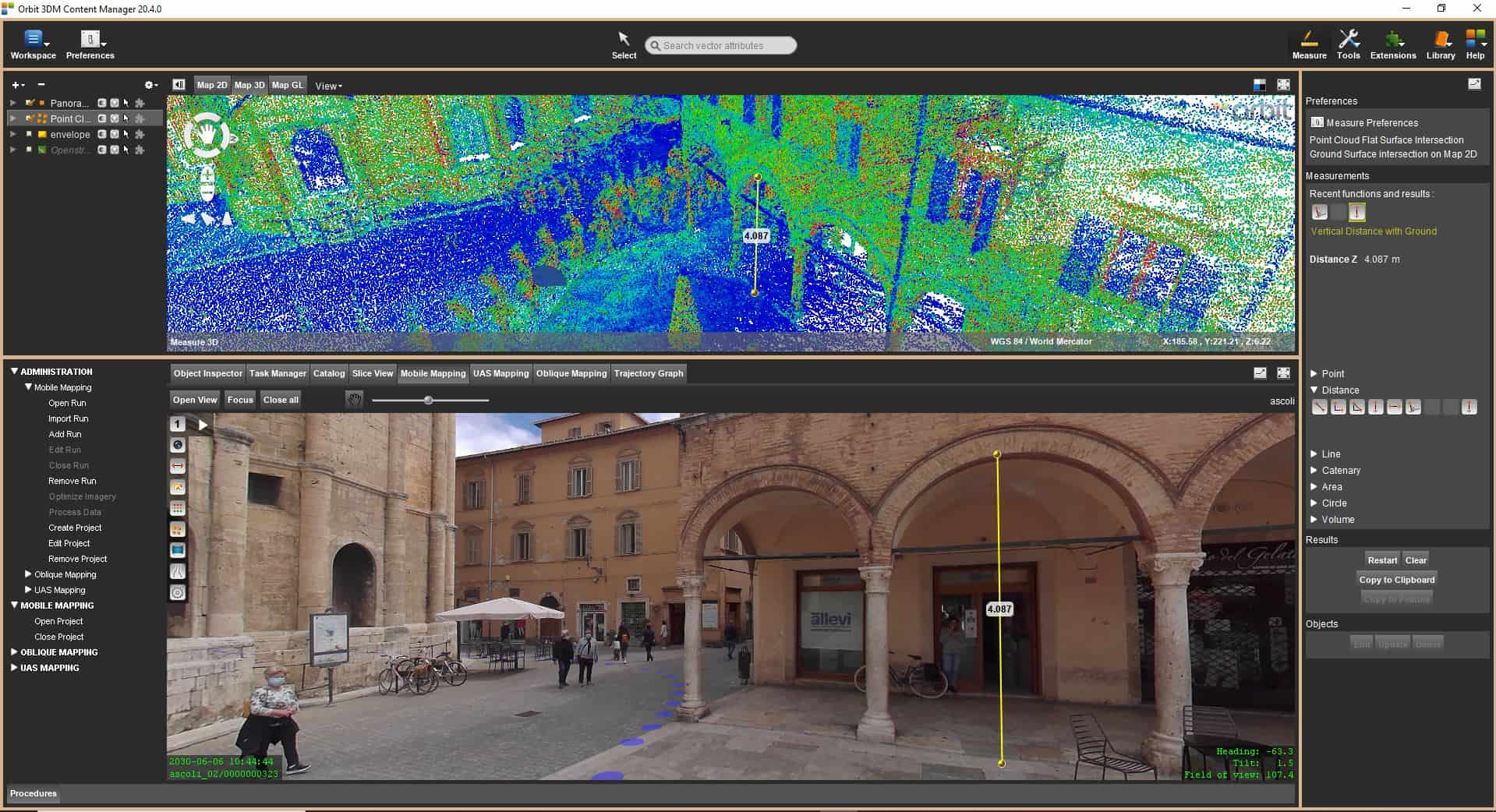 Con Orbit Mobile Mapping ottieni il massimo nella gestione dei dati. Importazione, processo, gestione, combinazione immagini e nuvole di punti, linee, aree, profili, volumi, condivisione on-line, integrazione.